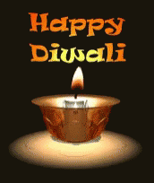 A glowing diya (oil lamp) illuminates the darkness, with 'Happy Diwali' text above, celebrating the festival of lights.