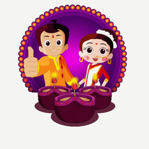 Chutki and Chhota Bheem celebrate Happy Diwali with festive greetings and traditional diyas.