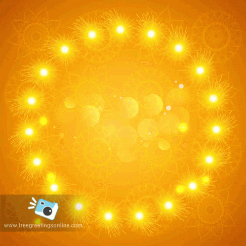 Celebrate Diwali with this vibrant greeting featuring sparkling lights and three traditional lit diyas.