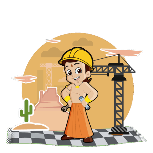 Chhota Bheem, dressed as an engineer with a hard hat and wrench, celebrates Happy Engineers' Day.