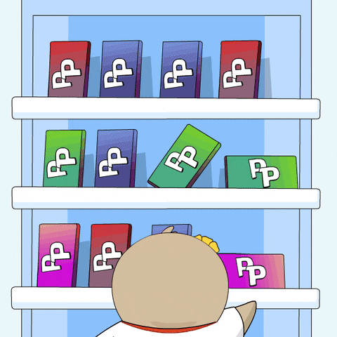 A cute Pudgy Penguin shops for Feastables candy at Walmart, scanning its purchase at checkout.