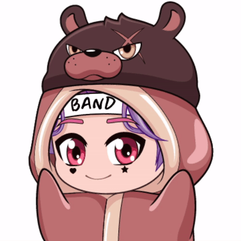 Cute animated character in a bear hat and 'BAND' headband, smiling and laughing, wishing a happy good morning.