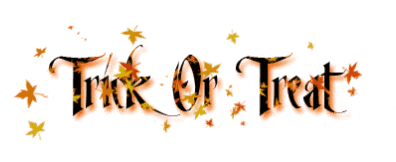 Animated text "Trick Or Treat" with autumn leaves, perfect for Halloween greetings.