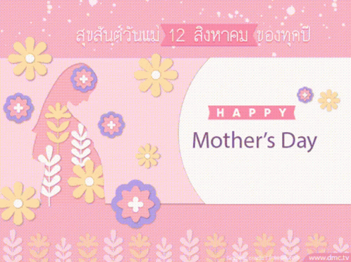 Pink background with flowers, a pregnant woman silhouette, and text wishing 'Happy Mother's Day' for August 12th.