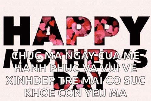 A heartfelt Mother's Day greeting with animated hearts, wishing Mom happiness, joy, beauty, youth, and health.