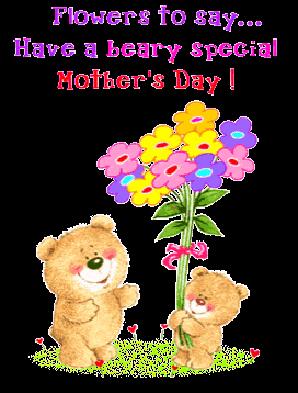 Cute teddy bears with colorful flowers wishing a 'beary special' Happy Mother's Day.