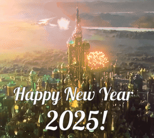 Spectacular fireworks light up the Emerald City castle for a Happy New Year 2025 celebration, bringing joy and festivities.