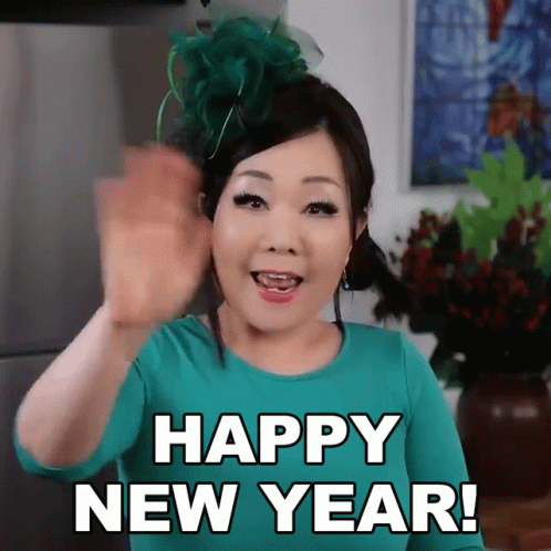 Emily Kim, also known as Maangchi, wishes everyone a Happy New Year, wearing a festive green outfit.