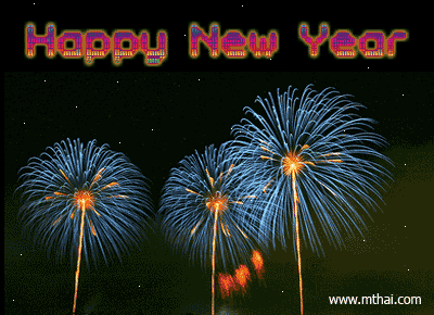 Fireworks display with 'Happy New Year' text, celebrating the season's greetings.