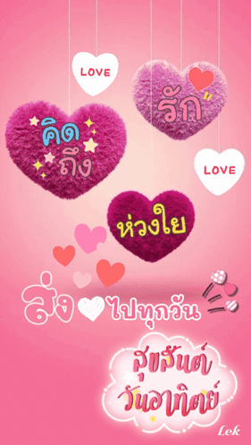 Vibrant pink background with fluffy hearts expressing love, care, and 'miss you' wishes for a Happy Sunday.