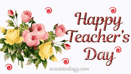 A beautiful Happy Teacher's Day greeting card featuring a bouquet of pink and yellow roses.