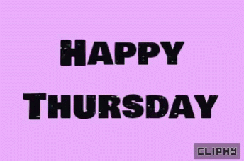 A vibrant pink background displaying 'Happy Thursday' in black text, with a Cliphy logo.