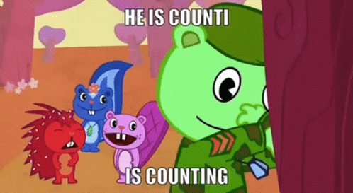 Flippy from Happy Tree Friends counting while other characters watch in this animated scene.