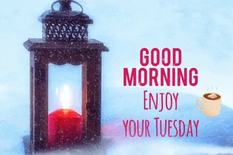A cheerful cartoon giraffe holds up a green sign wishing everyone a Happy Tuesday.