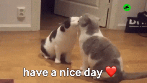 Two adorable cats affectionately touching noses with a heartwarming 'have a nice day' message.