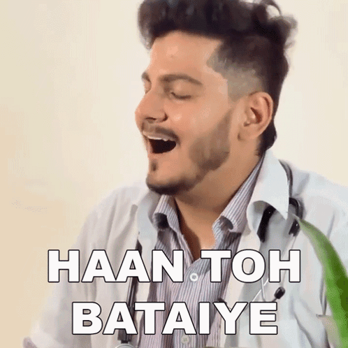 Nishant Chaturvedi, dressed as a doctor, smiles and says 'Haan Toh Bataiye' (Yes, so tell me).