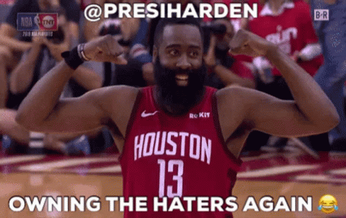 James Harden, known as 'The Beard,' flexes on court, proudly declaring he's 'owning the haters again.'