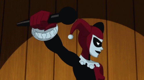 Harley Quinn, the iconic cartoon character, makes a dramatic mic drop in this animated clip.