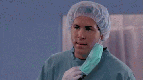 Ryan Reynolds as a surgeon, confused and asking 'But Why?' in Harold And Kumar.