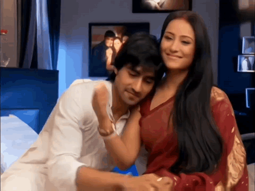 Harshad Chopda and Anupriya Kapoor share a tender moment, with Harshad resting on Anupriya's shoulder.