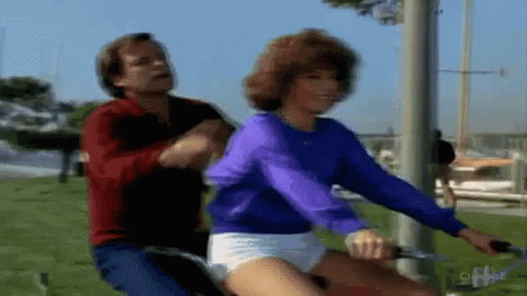 Jonathan Hart covers Jennifer Hart's eyes while they cycle together in a park.