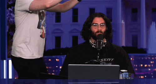 Hasan Piker on the H3 Podcast, wearing glasses and a 'SENT' shirt, during a Leftovers stream.