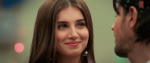 Tara Sutaria and Sidharth Malhotra share a shy smile, looking at each other in a romantic moment.