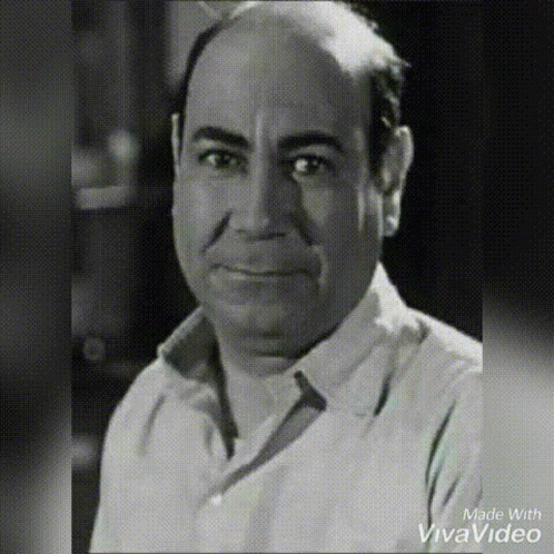 A classic black and white portrait of the iconic Egyptian actor Hassan Fayek, smiling warmly in a light-colored shirt.