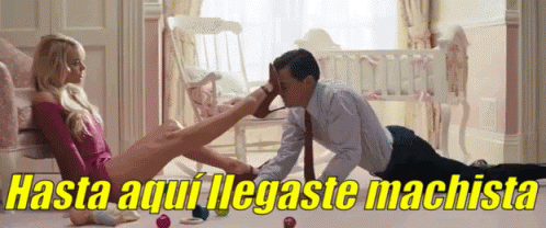 A woman places her high-heeled foot on a man's head, with the text 'You've come this far, sexist' overlaid.