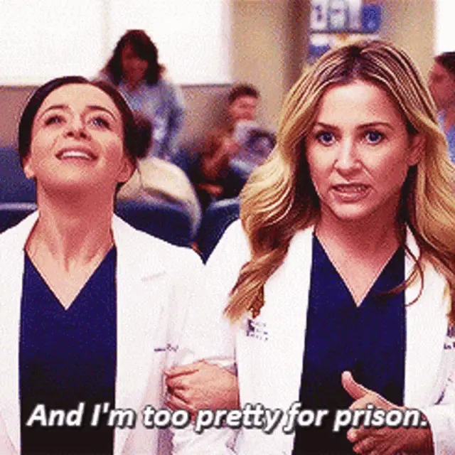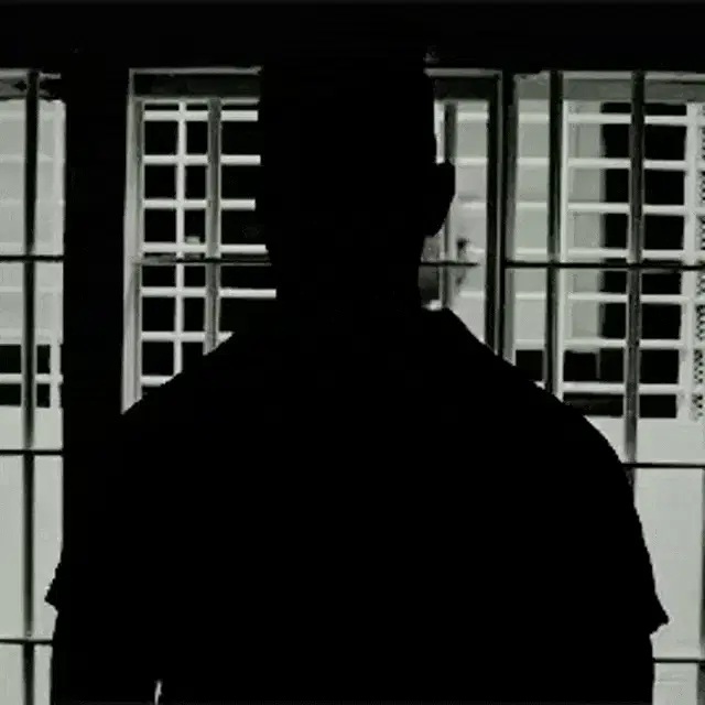 Kangana Ranaut in a golden sequined jacket, being handcuffed through a cell door.
