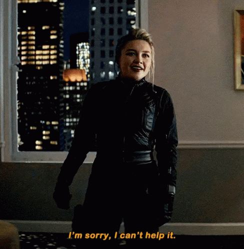 Yelena Belova from Hawkeye shrugs and says, 'I'm sorry, I can't help it.'