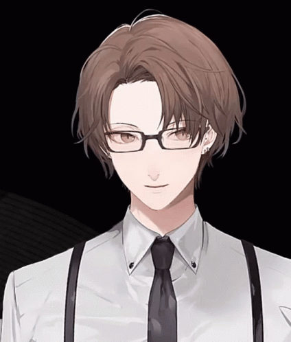 Hayato Kagami, the Nijisanji VTuber, winks and smiles charmingly while wearing glasses and suspenders.