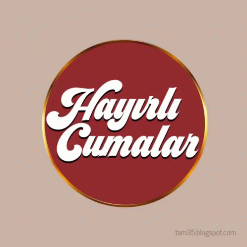 Animated greeting card with 'Hayırlı Cumalar' (Blessed Fridays) text on a spinning red and gold emblem.