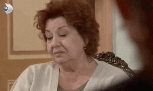 Hayriye from Yaprak Dökümü is visibly upset, expressing frustration about someone ruining her nerves.