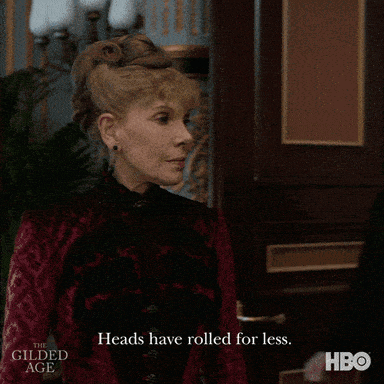 A tense moment from The Gilded Age, where a woman warns a man that 'Heads have rolled for less'.