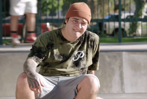Tanner Getter (Bryce) in a tie-dye shirt shakes his head, expressing disbelief in a skate park.