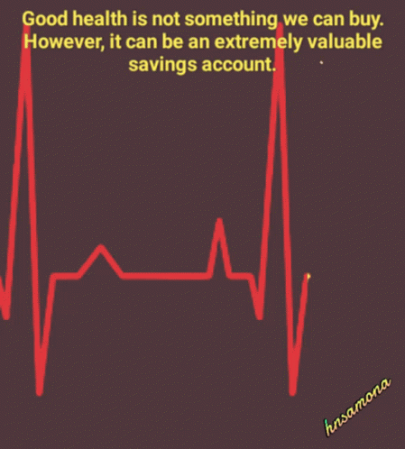 Animated heartbeat line with a powerful quote about good health being a valuable savings account.
