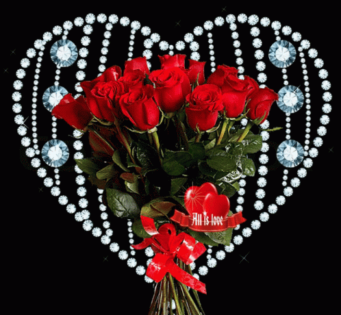 A beautiful bouquet of red roses surrounded by a sparkling diamond heart, expressing love and affection.