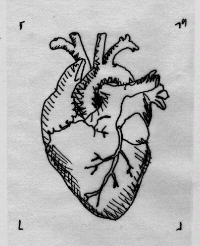 Animated black and white line drawing of an anatomical heart transforming into a stylized heart or fist.