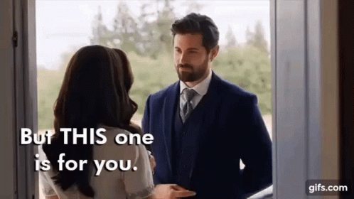 Lucas gifts Elizabeth a special item, saying 'This one is for you,' to which she happily responds, 'Thank youuu!'