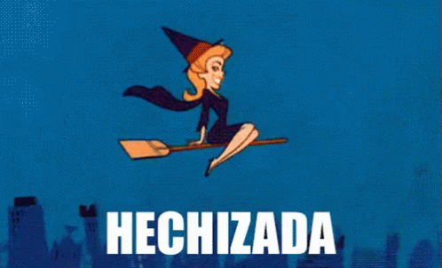 A classic cartoon witch flies on her broomstick, with the title 'Hechizada' displayed on screen.