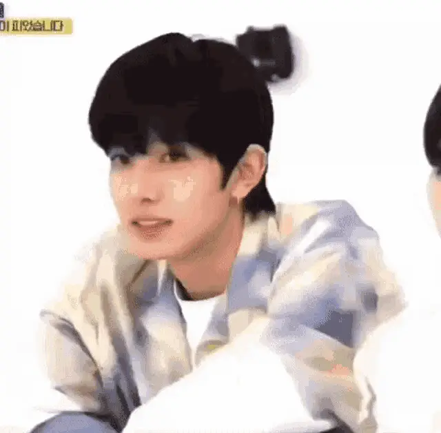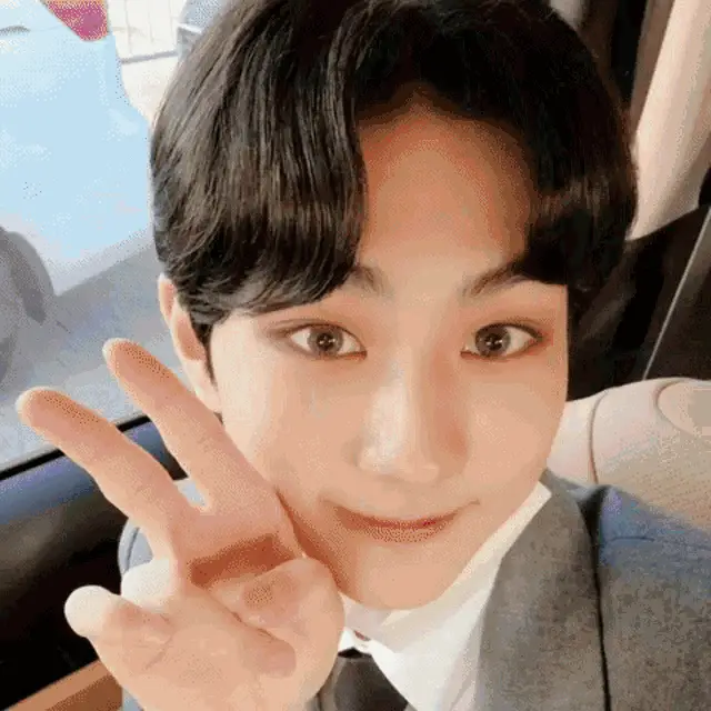 A red heart locket opens to reveal a picture of Heeseung, wearing a yellow beanie and plaid shirt, posing with a peace sign.