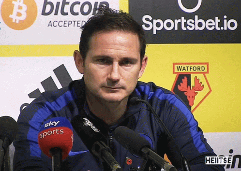 Frank Lampard, manager of Chelsea FC, reacts with 'OKAY' at a press conference.