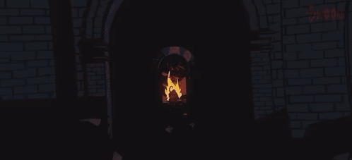 a cartoon drawing of a fire with a picture of a devil in the background