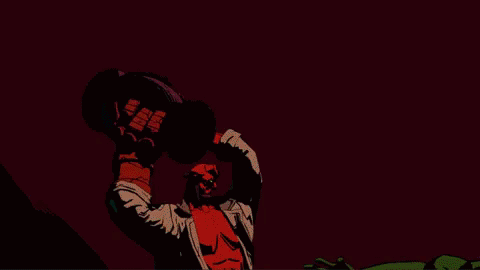 a cartoon of a man and a monster fighting