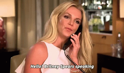 Britney Spears answers the phone, introducing herself with 'Hello! Britney Spears speaking'.