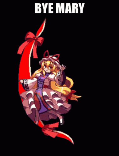 Pixel art of Yukari Yakumo from Touhou Project with the text 'Bye Mary' displayed prominently.