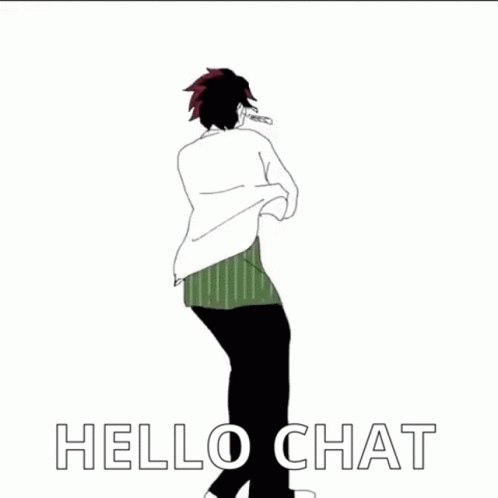 Tanjirou from Kimetsu No Yaiba performs a lively dance, greeting viewers with 'Hello Chat' in this animated clip.