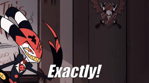 Blitzo from Helluva Boss emphatically says 'Exactly!' in this animated clip.