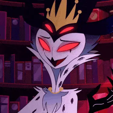 Stolas from Helluva Boss laughs with the audience in the 'Seeing Stars' episode, following a prompt to laugh.